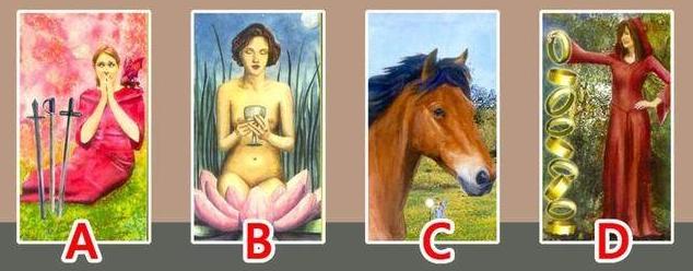 現在,在心裡默念對方的名字, 然後從下面四張牌中,直覺選出一張。 選擇塔羅牌I 代表已經有人走進了你的生活,這個人對你影響會非常大。但是因為這個人是帶著把寶劍走進你生活的,所以當這個人出現時,你很容易被受到傷害。也就意味著你們之間的緣分並不是很深,又或者是說對方並不是很在乎你。 選擇...