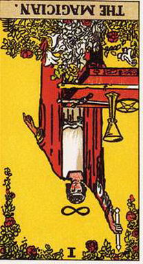 魔術師逆位元暗示你需要和天空或土地更強的連接,因為此時你已經失去正確的動機、計畫、熱情或務實的態度,來完成你內心的願望。當逆位的魔術師接觸到土地,而和天空失去聯繫時,他就會失去了精神上的聯繫了。失去這份聯繫,便喪失了良知,並可能做出違反社會的行為。他可能會以逐漸毀掉對方的方式對別人進行控制,可能是暗中作梗,或以任何他想得到的方法,這可能包括符咒、妖術、雇人暗殺或自己動手。