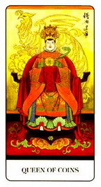 錢幣皇后暗示對某段關係有實質的承諾,而且尊重現實的價值。皇后牌是在描述一個人,當她在發展兩性關係時,對自己充滿信心而務實。他認為可靠比熱情和興奮更有價值,因為她是基於長遠的考量。正如某位錢幣皇后所說的:“激情只能維持一個晚上,而友誼則是一生一世的。”